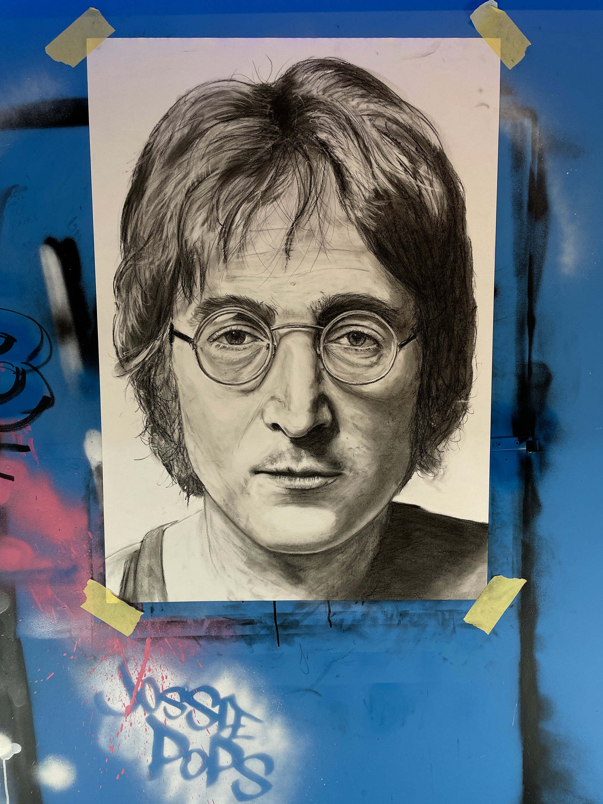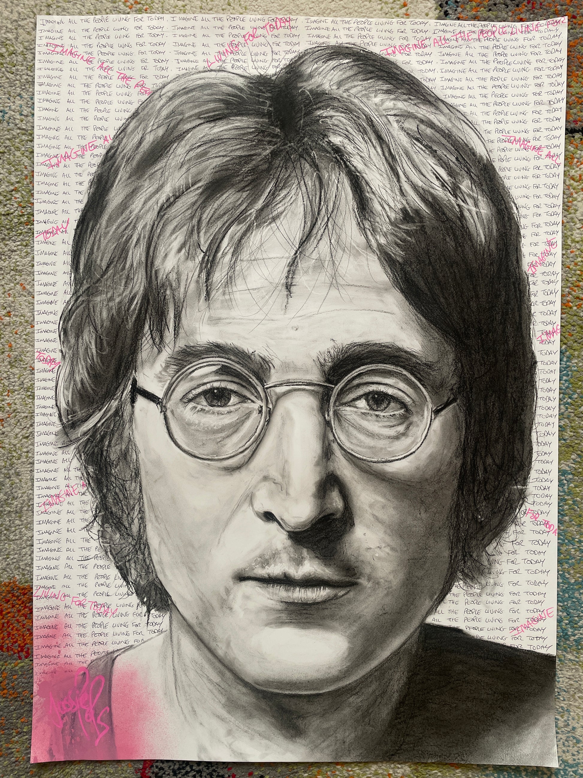 A1 Original Charcoal Study of John Lennon from The Beatles