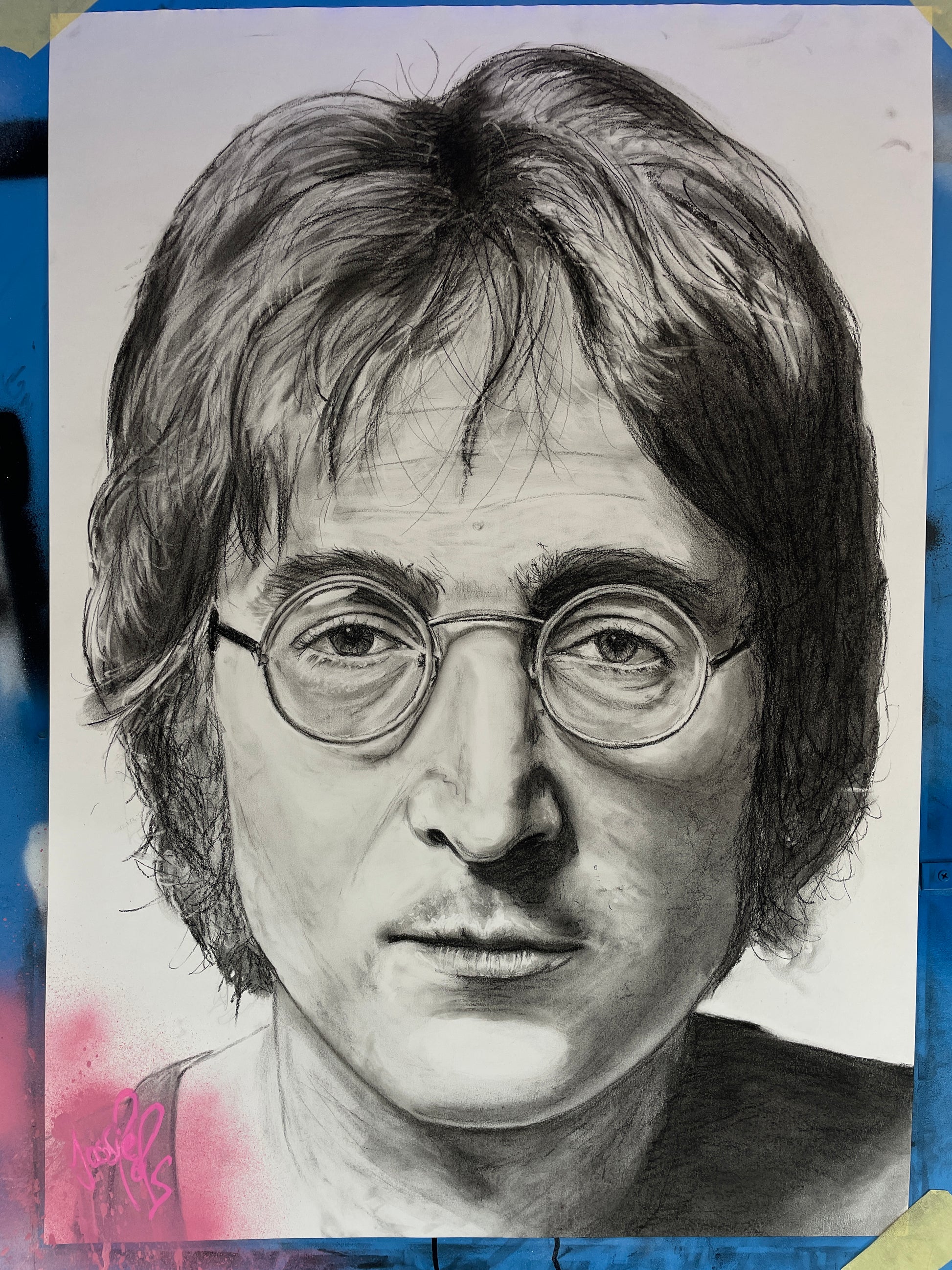 A4 Print of my Charcoal Study of John Lennon from The Beatles