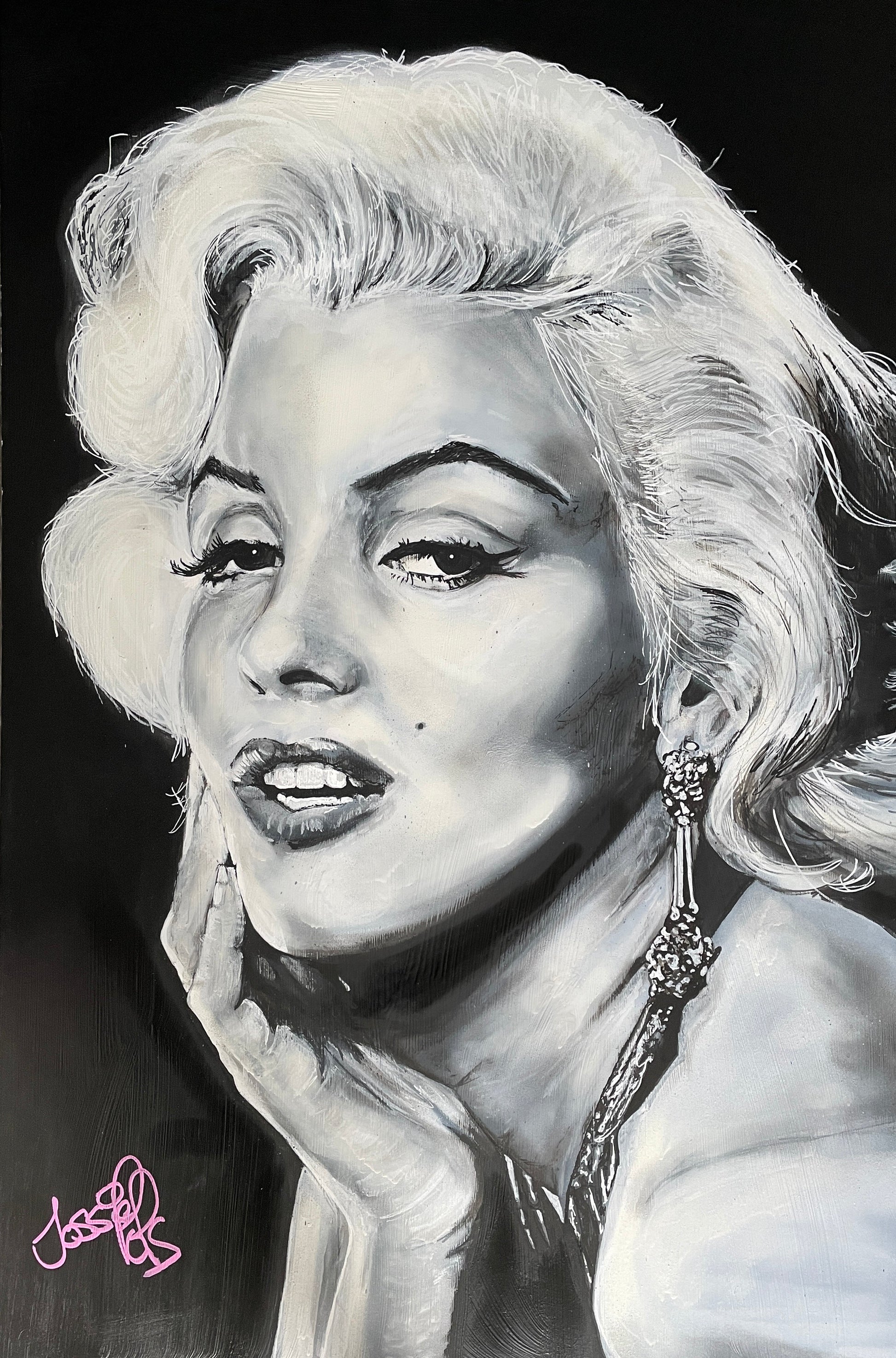 MARILYN, measuring 122cm x 81cm this piece was nothing but magic to create. This is my first female portrait on the large scale, and I wanted to make it epic. I toyed with who to choose but frankly, there is one woman who is known and admired globally, Marilyn Monroe.