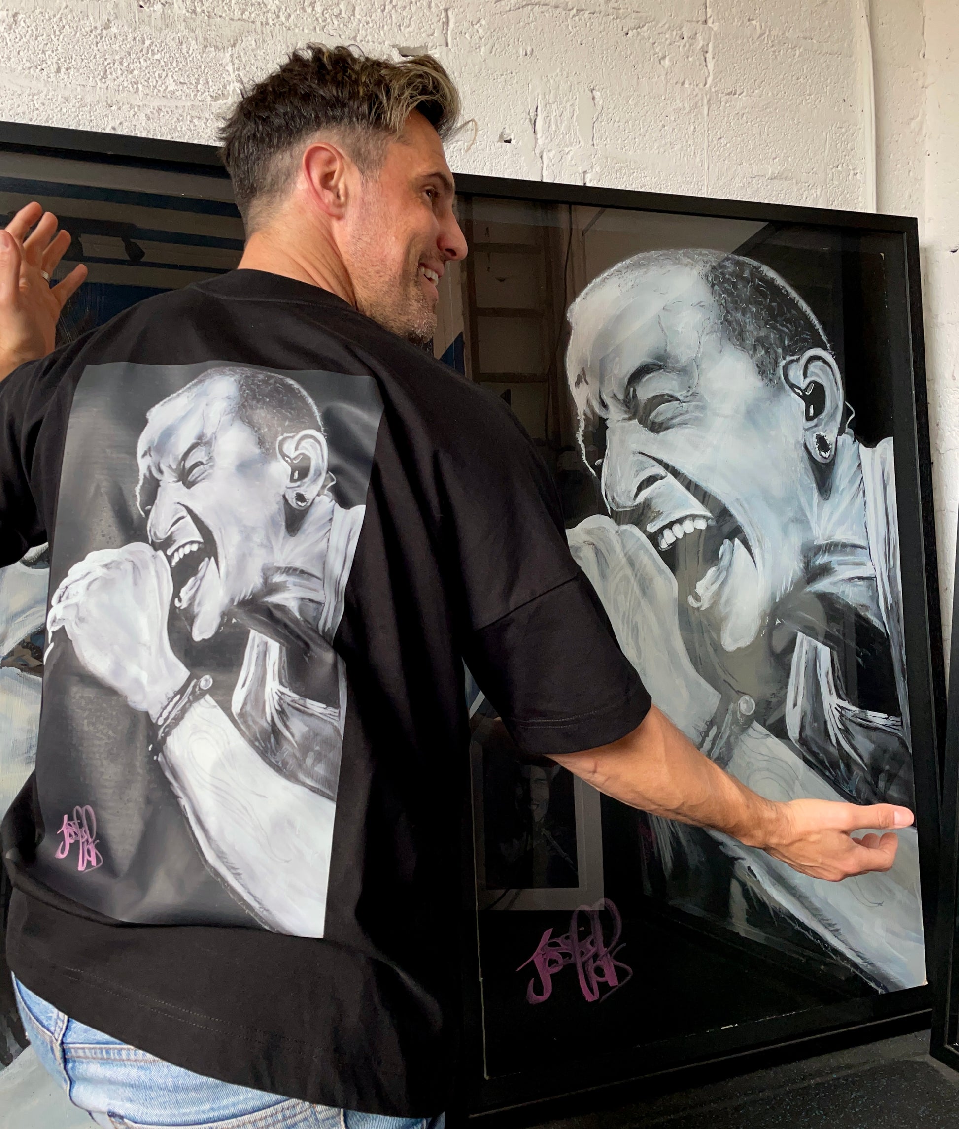Incredibly talented Artist and very engaging. I bought one of his T-shirts, the softness and print quality was out of this world, I would highly recommend.
