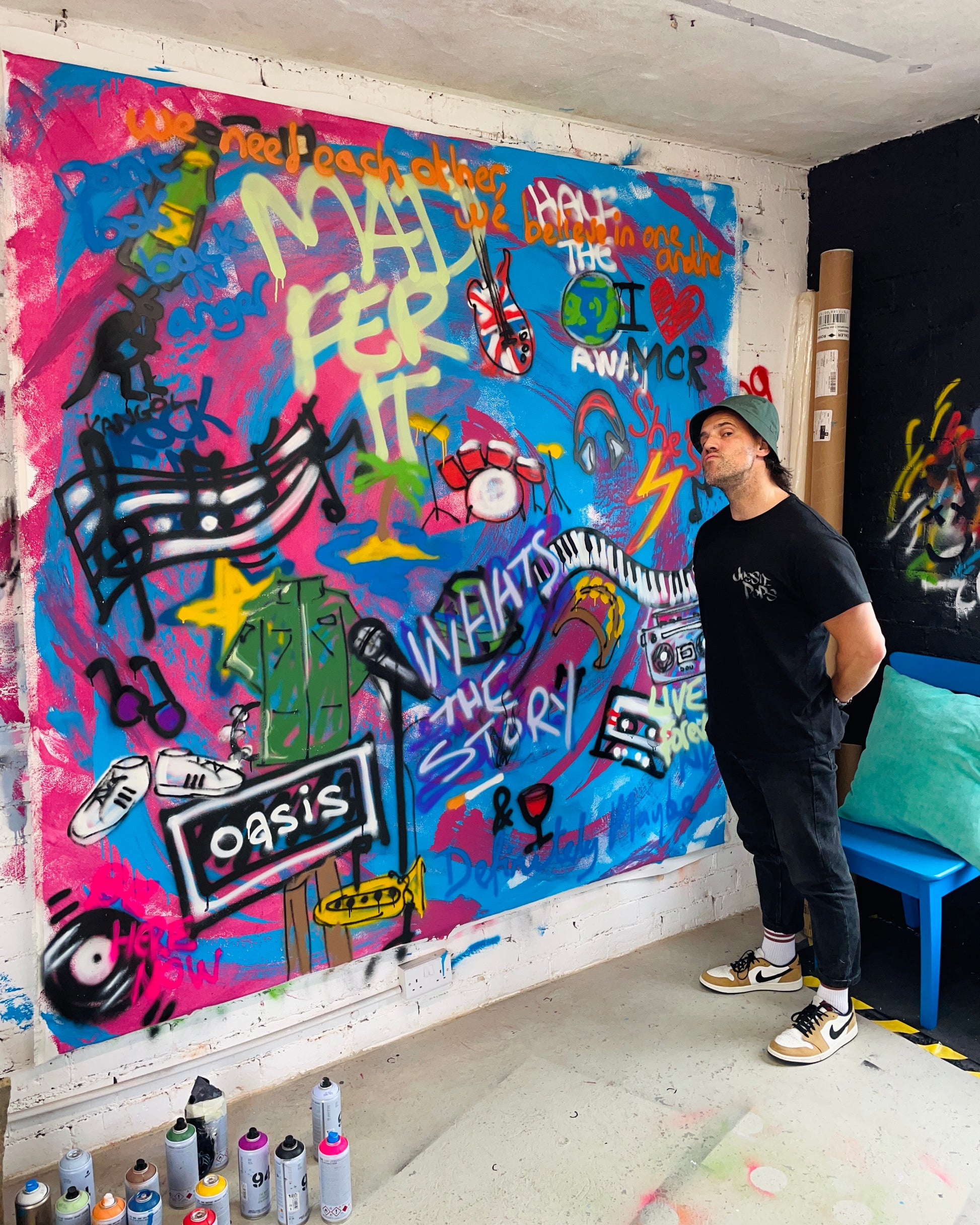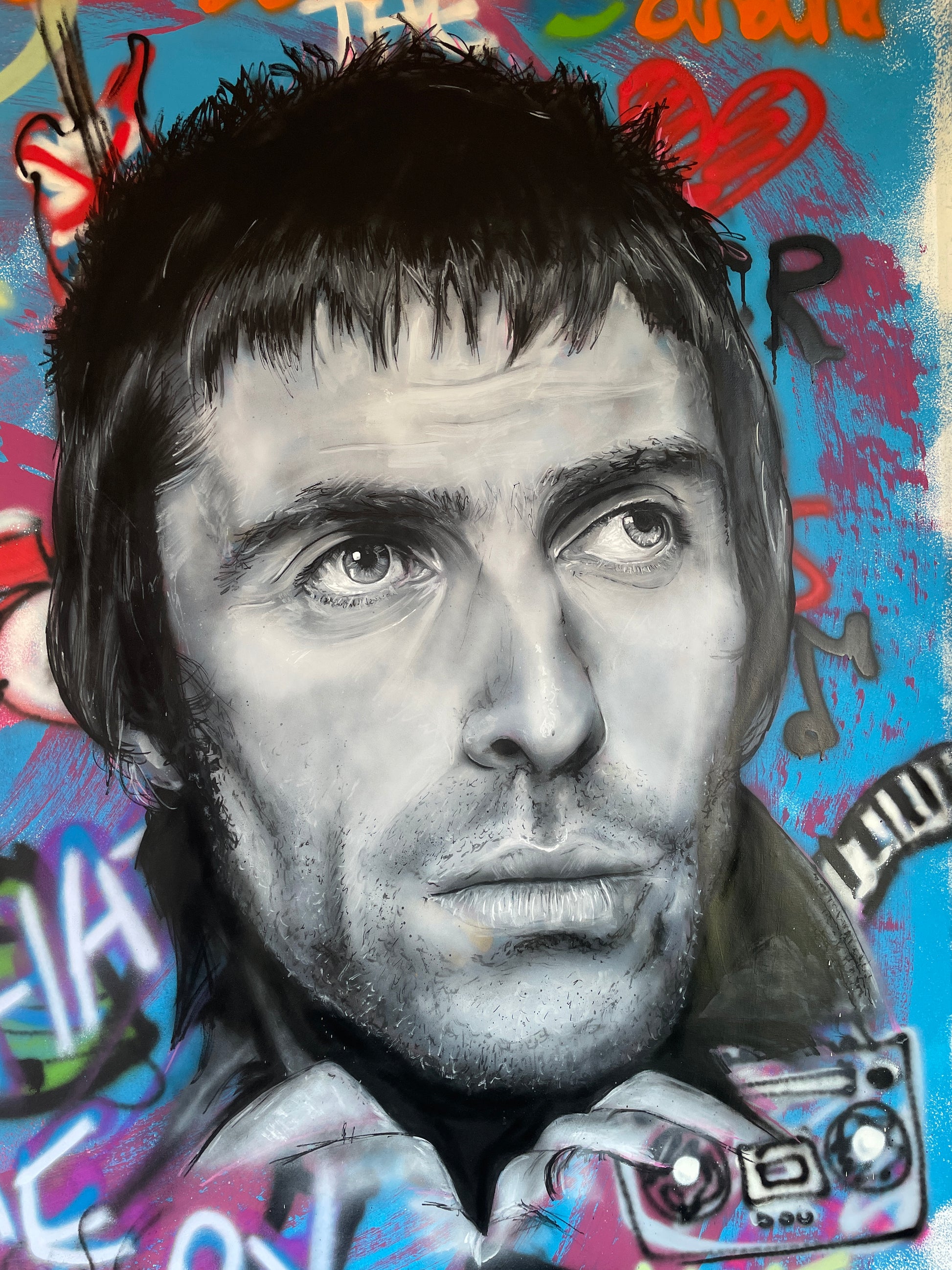 The graffiti elements are like layers of memories - lyrics, symbols and colours other fans will instantly recognise. Oh and this piece is big for a reason: Oasis weren’t subtle, and neither is the artwork."